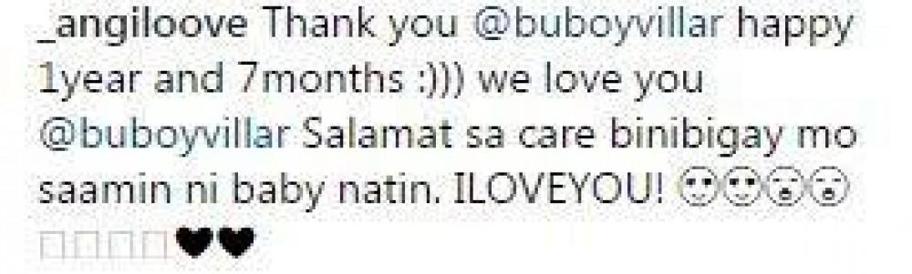 “Thank you @buboyvillar happy 1year and 7months :))) we love you @buboyvillar Salamat sa care binibigay mo saamin ni baby natin. ILOVEYOU!”