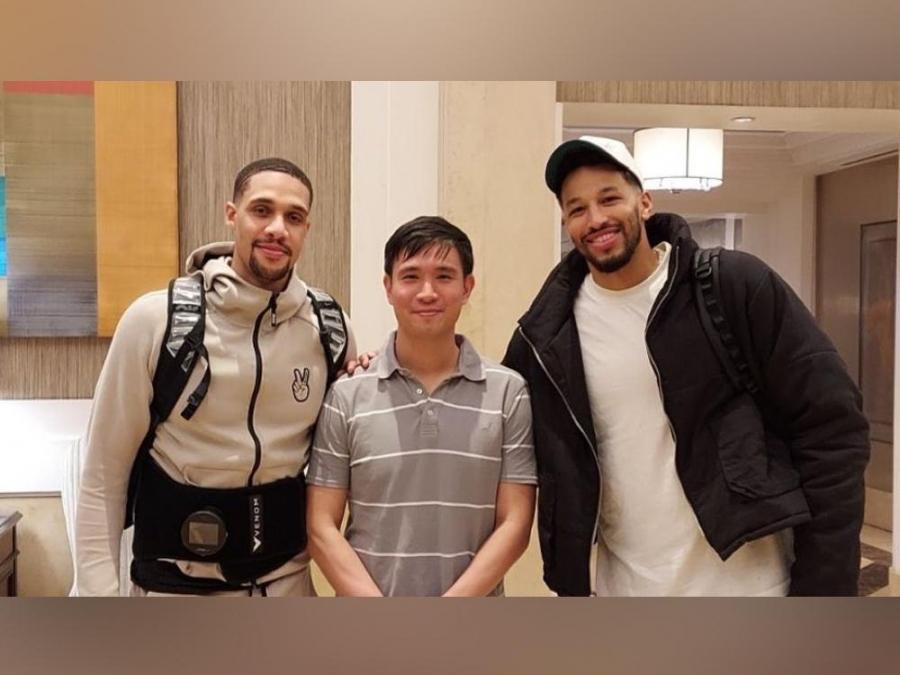 Charles Tiu (center) with Andre Roberson (right). (Photo: Charles Tiu/Twitter)