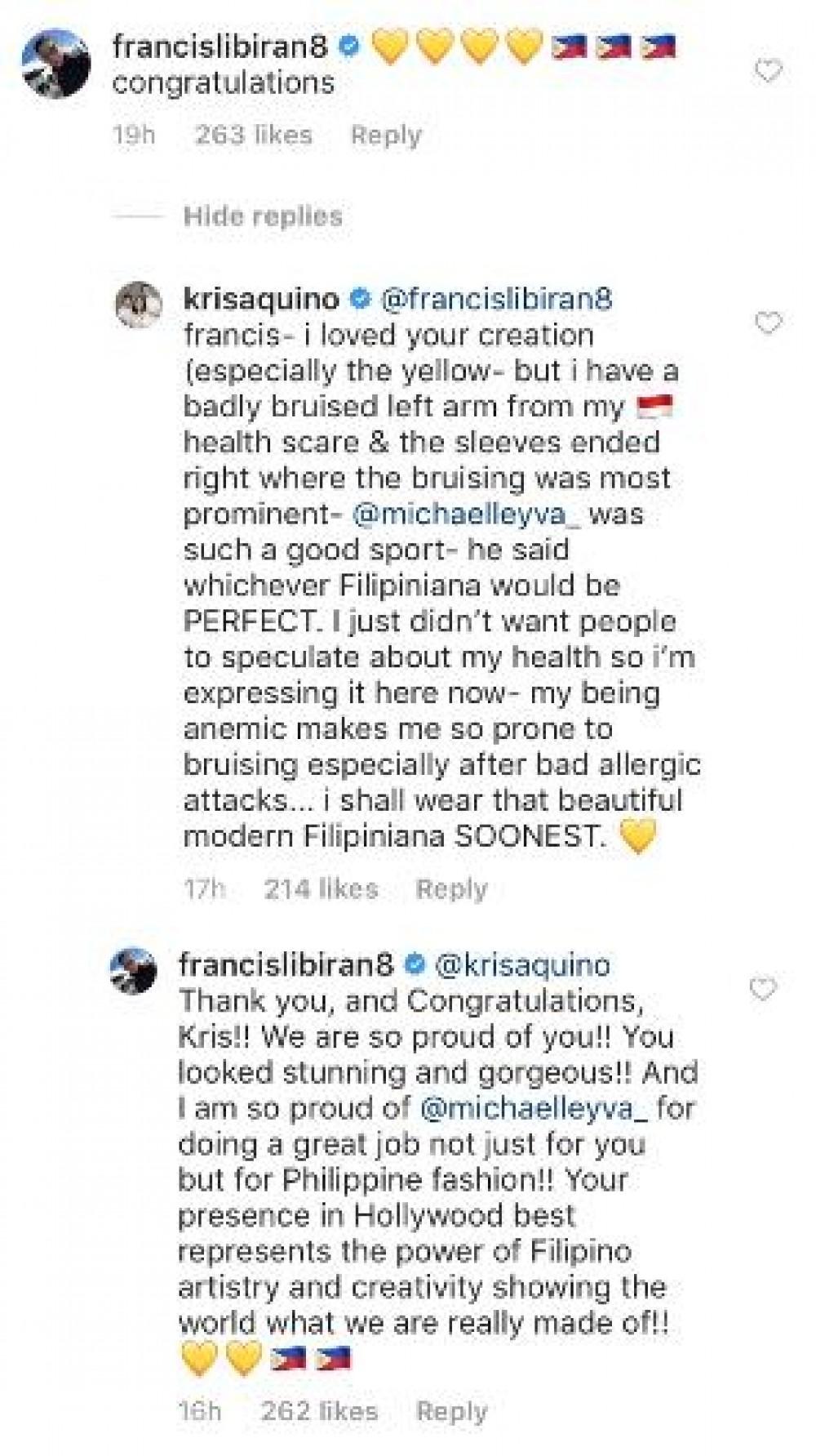 Libiran replied to Kris's sweet message and congratulated Leyva for creating a wonderful masterpiece.