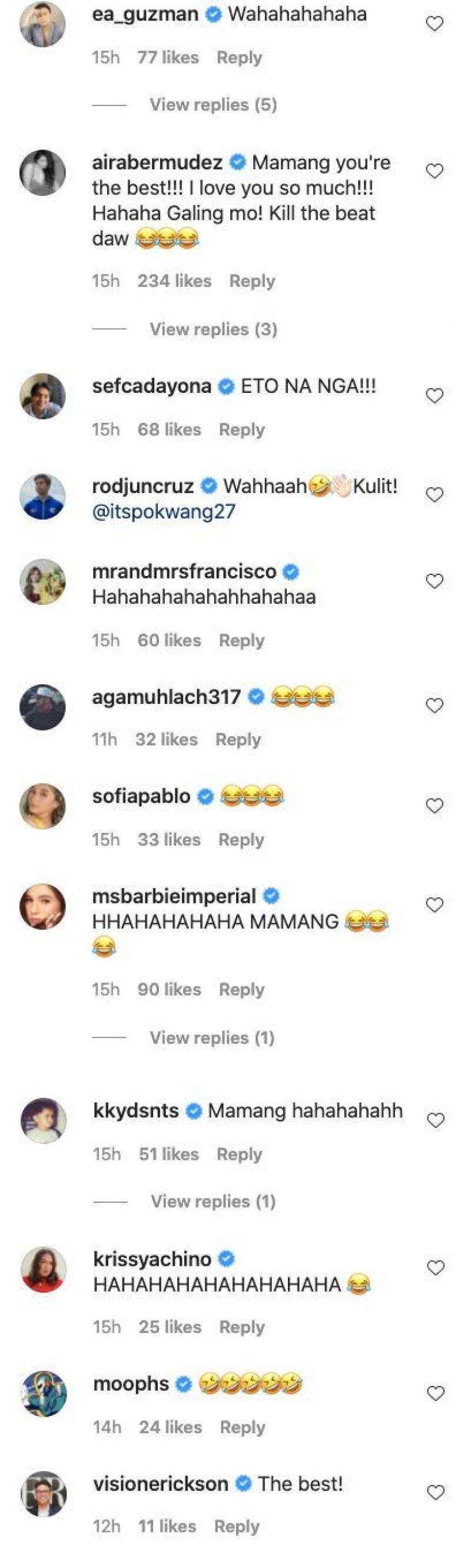 Comments ng celebrities sa TikTok video ni Pokwang / Source: itspokwang27 (IG)