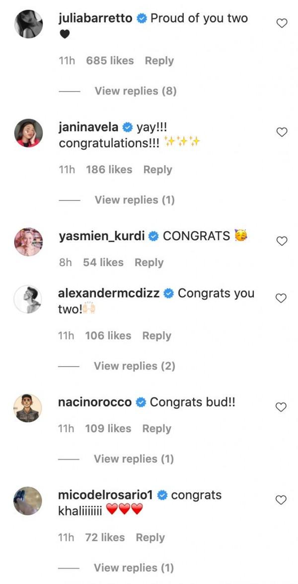 The news not only excited fans but fellow friends from the industry as well, including Rocco Nacino, Marco Gumabao, Yasmien Kurdi, Julia Barretto, and so much more.