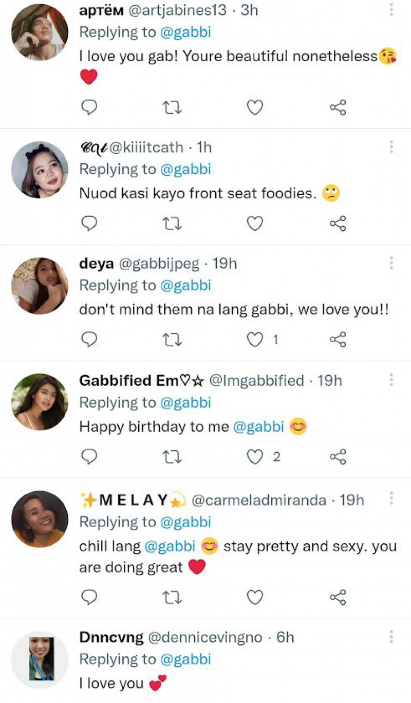 Netizens and supporters showed their love and support for Gabbi Garcia. | Photo courtesy: gabbi (Twitter)