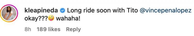 “Long ride soon with Tito @vincepenalopez okay??? wahaha!” the actress said.