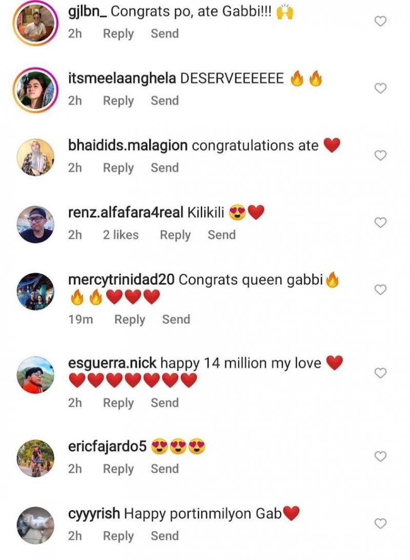 Meanwhile, aside from filling the comments section with hearts and fire reactions, fans of the Kapuso actress also left their congratulatory messages for Gabbi.