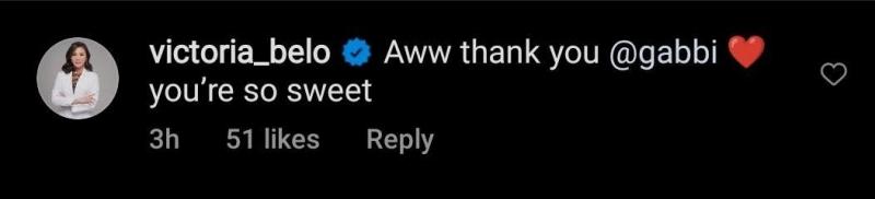 In the comments, Dra. Vicki replied to the 23-year-old Kapuso star's post saying, “aww thank you @gabbi (heart emoji) you're so sweet.”