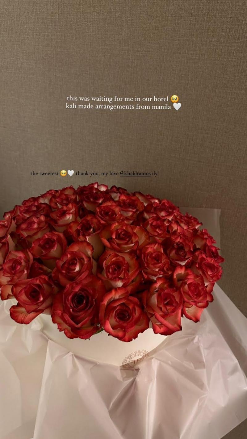 In her Instagram story, the Kapuso It Girl posted the gorgeous bouquet of flowers that Khalil arranged to be sent over to her hotel.