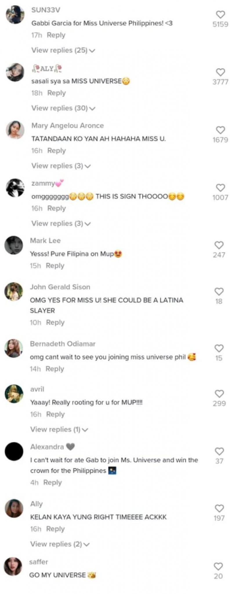 In the comment section of her TikTok video, netizens gave their approval, saying that Gabbi has what it takes to be a beauty queen.