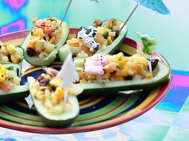 Her first recipe is cucumber boats which are rich in ascorbic acid and calcium from the combination of cucumbers, potatoes, and raisins.
