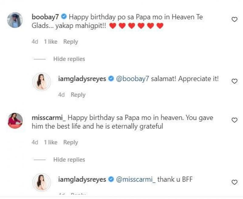'Pepito Manaloto' star Gladys Reyes remembers her late dad Sonyer Reyes on his 67th birthday. Read her message HERE: