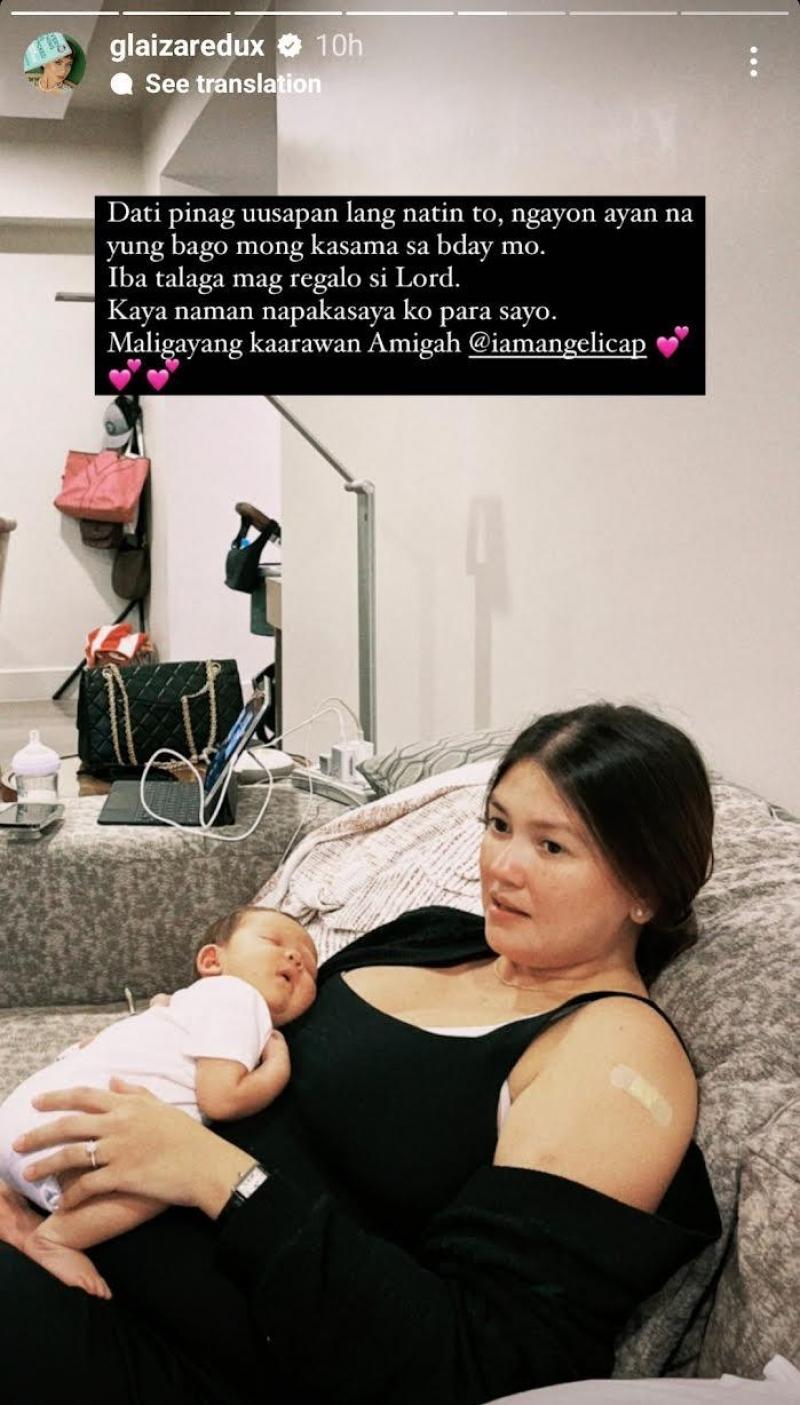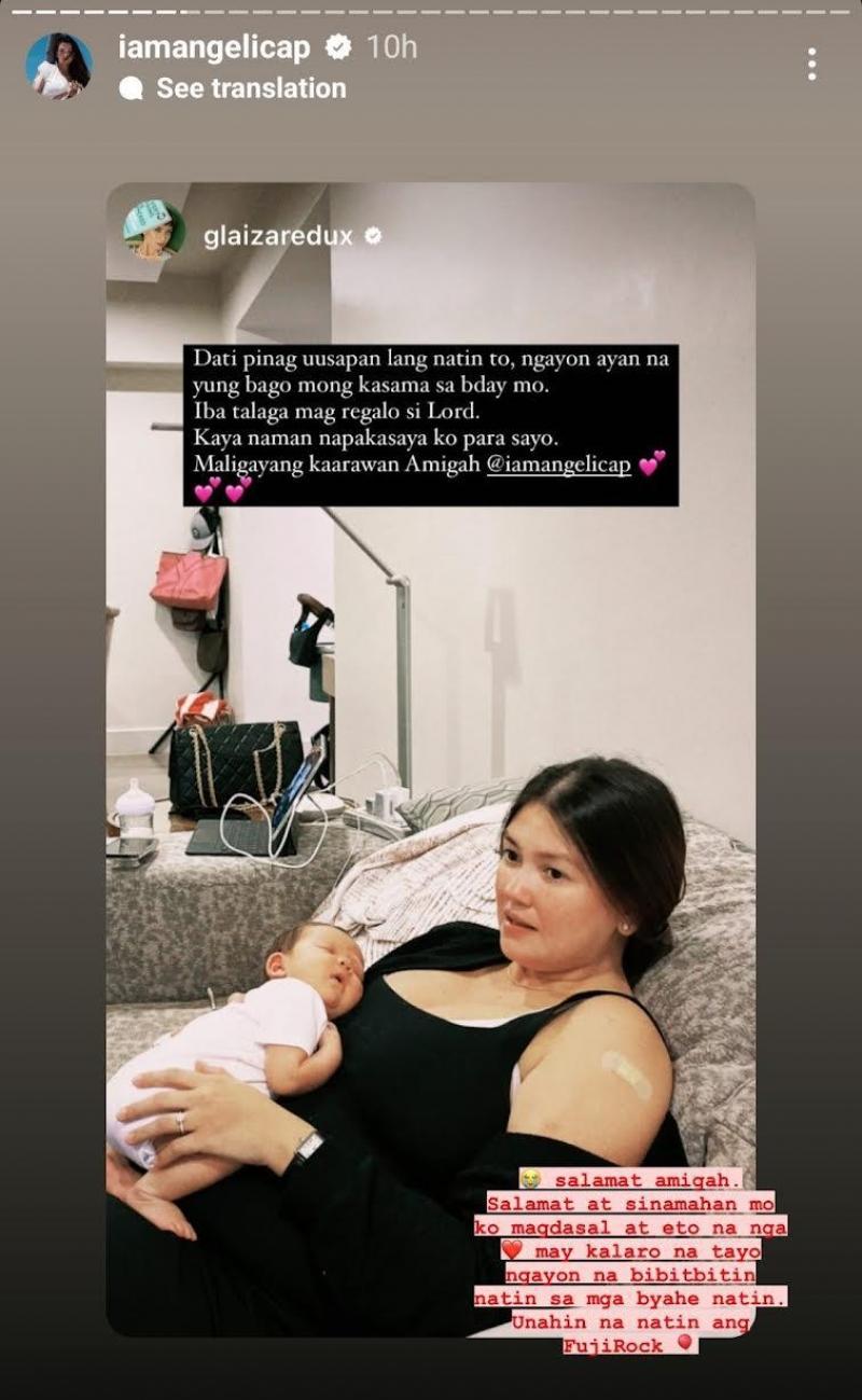 "Dati pinag-uusapan lang natin 'to, ngayon ayan na yung bago mong kasama sa bday mo. Iba takaga magregalo si Lord. Kaya naman napakasaya ko para sa'yo. Maligayang kaarawan Amigah @iamangelicap" she captioned in her post.