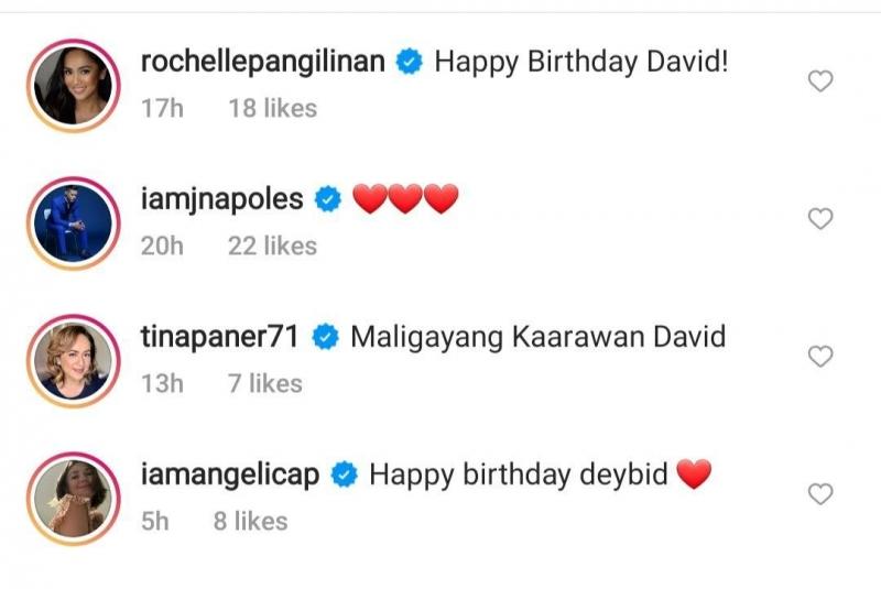 Other celebrities, including Rochelle Pangilinan, Jerald Napoles, Tina Paner, and Glaiza's best friend Angelica Panganiban, also sent their birthday greetings and messages for David in the comments section.