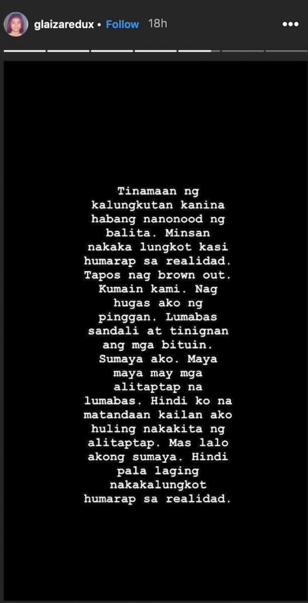 On Wednesday night, Glaiza shared on her Instagram Story a realization she fathomed while staring at the beautiful stars.