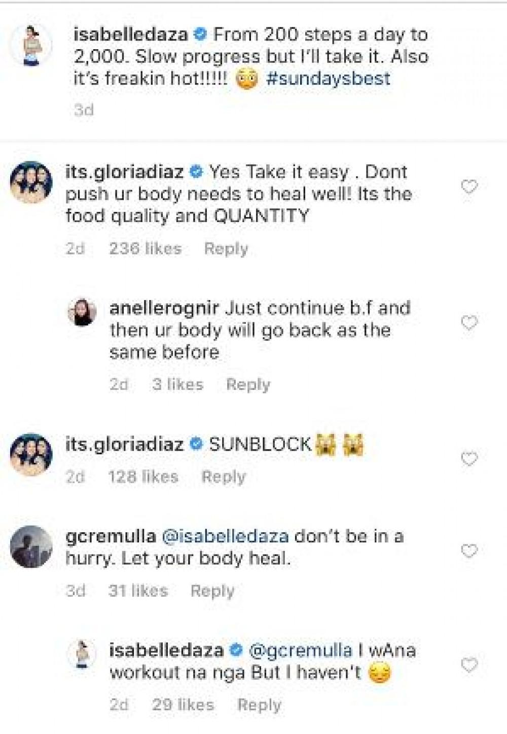 Nagpaalala naman ang kaniyang ina na si Gloria Diaz na maghinay-hinay at kailangan ng kaniyang katawan na maka-recover after giving birth.