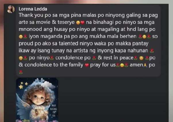 Ang netizen na si Lorena Ledda, nagpasalamat sa ipinamalas na husay ng aktres sa pagganap sa kanyang iba't ibang roles sa telebisyon at pelikula.