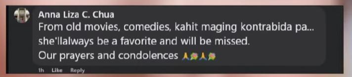 Ayon naman sa isa sa napakaraming tagahanga ni Gloria na si Anna Liza Chua, “From old movies, comedies, kahit kontrabida pa, she'll always be a favorite and will be missed.”