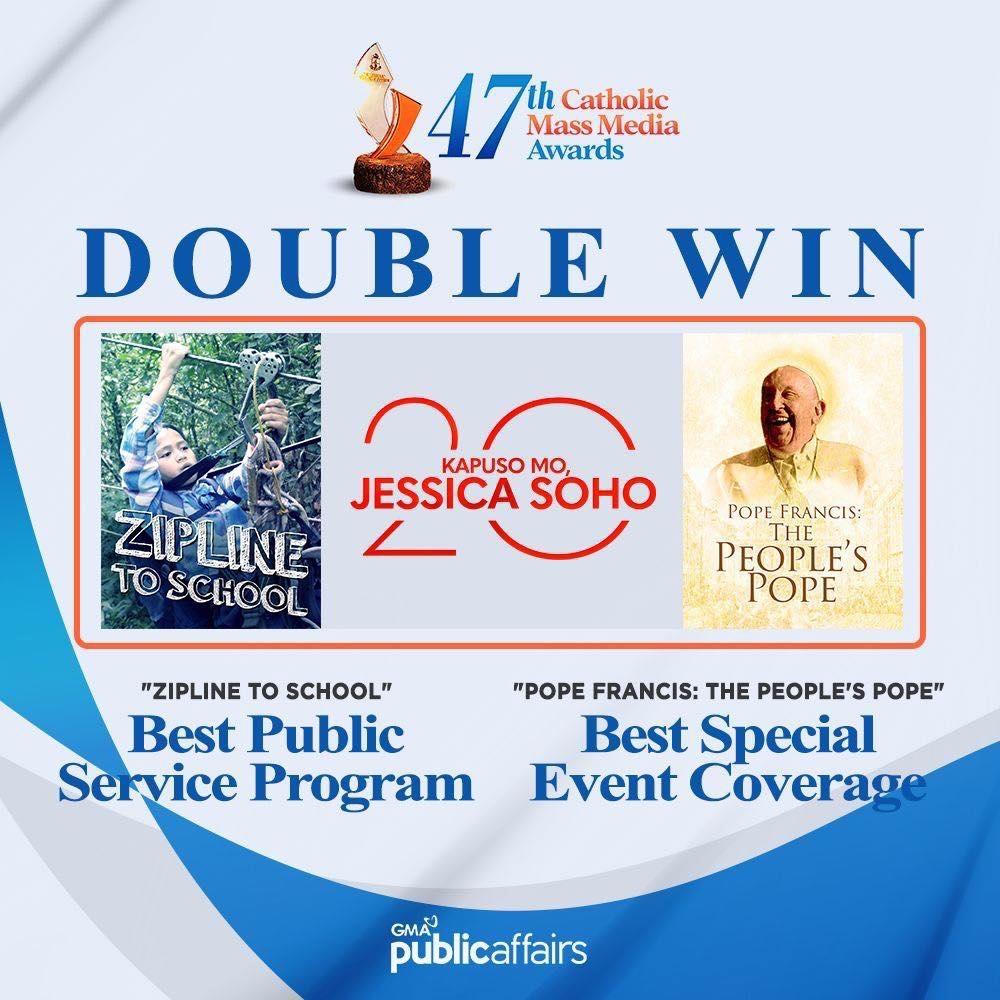 Multi-awarded public affairs program Kapuso Mo, Jessica Soho won as Best Public Service Program, and its special episode Kapuso Mo, Jessica Soho: Pope Francis: The People's Pope won Best Special Event Coverage.