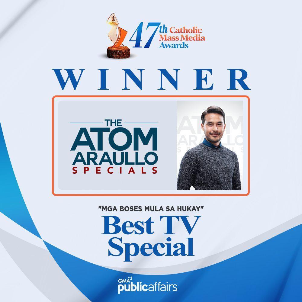 Award-winning The Atom Araullo Specials: Mga Boses Mula sa Hukay was recognized as the Best TV Special.