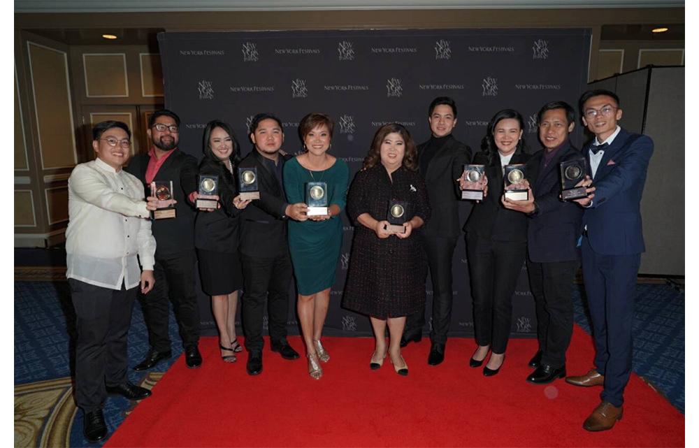 GMA gives the Philippines its biggest medal haul to date in New York Festivals. (From left to right) Mark Norella, executive producer for Reel Time: “Hawla” and “Gutom”; Neil Gumban, SAVP for Public Affairs; Regie Bautista, FVP for GMA Program Support Department and Corporate Strategic Planning; Ian Simbulan, executive producer for Reporter’s Notebook; Maki Pulido, host, Reporter’s Notebook; Jessica Soho, anchor, State of the Nation with Jessica Soho and host, Brigada; Alden Richards, lead actor, Alaala; Joy Madrigal, program manager, Alaala and Brigada; Raffy Tima, reporter, Brigada; Justin Baluyot, researcher for Reel Time: “Gutom”. (Photo courtesy of Steven Lam)