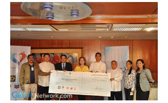 The Malampaya Foundation, Inc. (MFI) recently donated P1 million to GMA Kapuso Foundation (GMAKF), the socio-civic arm of broadcast company GMA Network, Inc., to fund the latter's relief operations efforts during the aftermath of the monsoon rains. MFI also donated the same amount to the Foundation for the victims of typhoon Sendong last year.