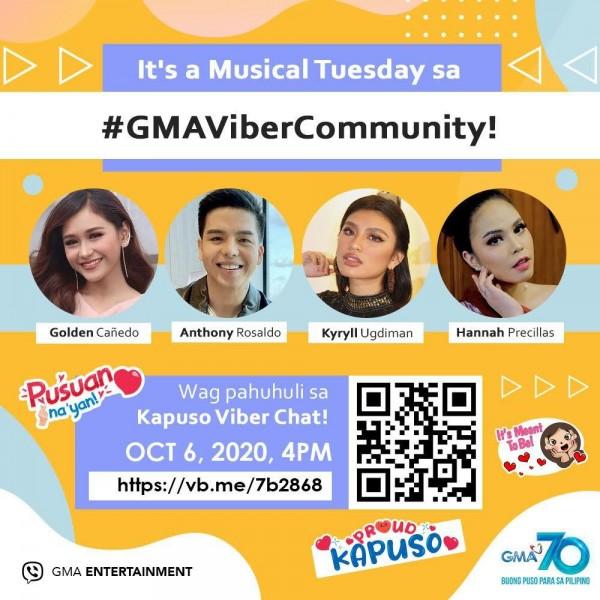 Following the release of their singles under GMA Music, Kapuso singers Golden Cañedo, Anthony Rosaldo, Kyryll, and Hannah Prescillas will be chatting up a storm in GMA Entertainment's Viber Community!