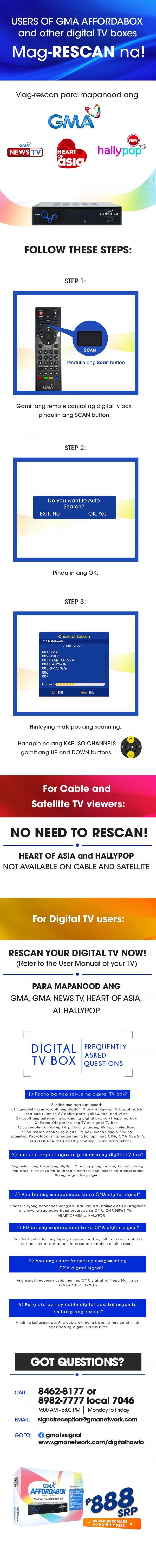 For more information, contact 84628177/89827777 loc 7046 from 9 a.m. to 6 p.m., emailsignalreception@gmanetwork.com, visit facebook.com/gmatvsignal, or log on to www.gmanetwork.com/digitalhowto
