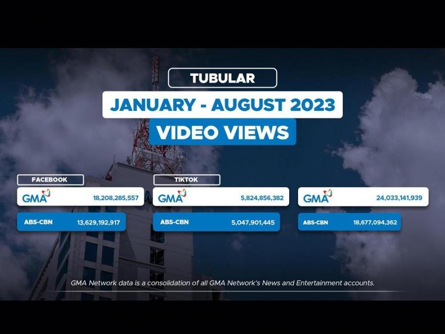 GMA Network is still the top Filipino news and entertainment media company on Facebook and TikTok, with over 24 billion combined views from January to August 2023, according to Tubular data.