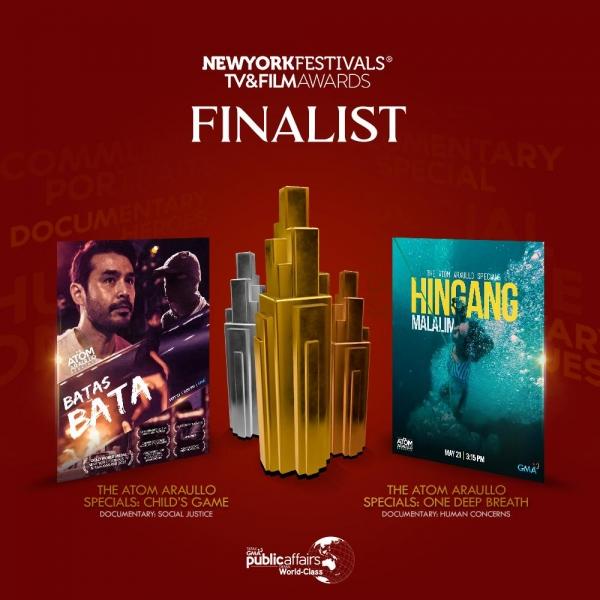 The bi-monthly public affairs program The Atom Araullo Specials earns back-to-back shortlisted entries. The episodes “Child's Game (Batas Bata)” and “One Deep Breath (Hingang Malalim)” are competing in the Documentary: Social Justice and Documentary: Human Concerns categories, respectively.