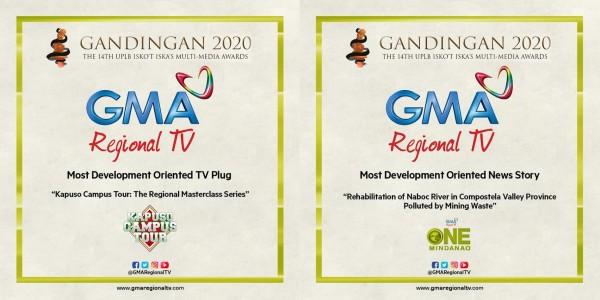 GMA Network has been lauded anew by the students of the University of the Philippines Los Baños as various Kapuso programs and personalities won at the “Gandingan 2020: The 14th UPLB Isko't Iska Multi-media Awards.”