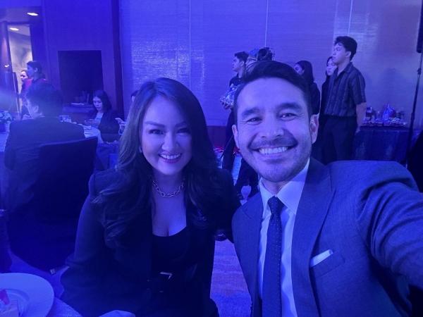 GMA Senior Vice President for Corporate Strategic Planning and Business Development, Chief Risk Officer, Head of Program Support Department Regie C. Bautista with Most Trusted TV News Presenter Atom Araullo.