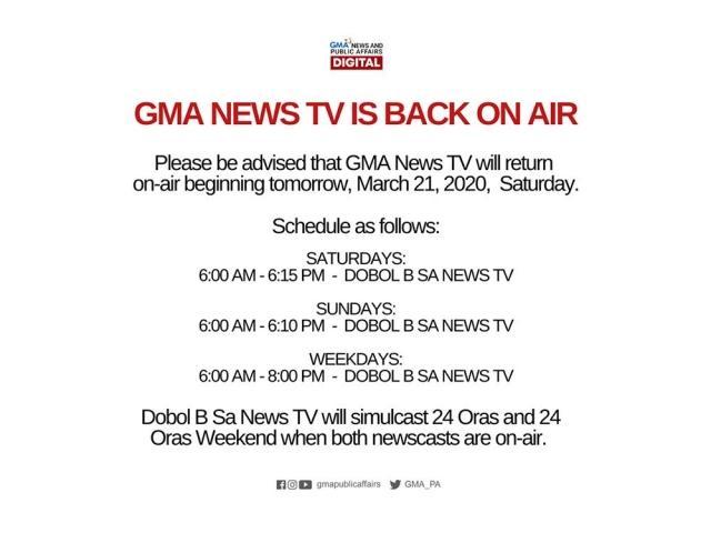 The announcement was made on GMA News and Public Affairs' official Facebook Page alongside the temporary programming.