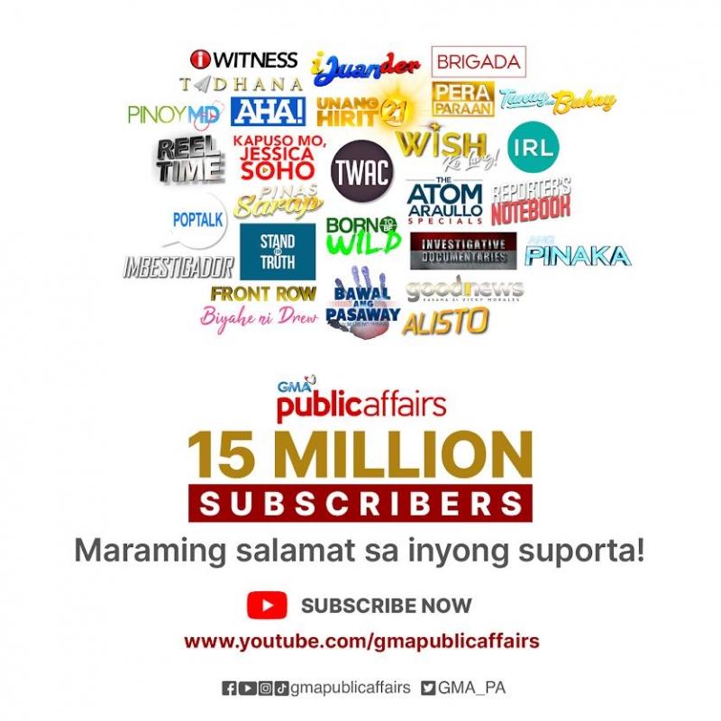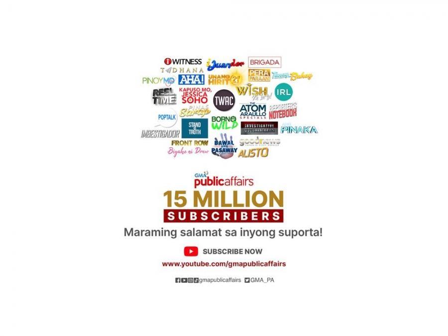 It was in 2016 when GMA Public Affairs surpassed 100,000 subscribers on YouTube and received its Silver Play Button. Two years later, it was awarded with a Gold Play Button for gaining over 1 million subscribers. And in 2020, the channel earned the Diamond Play Button for its 10 million subscribers milestone.