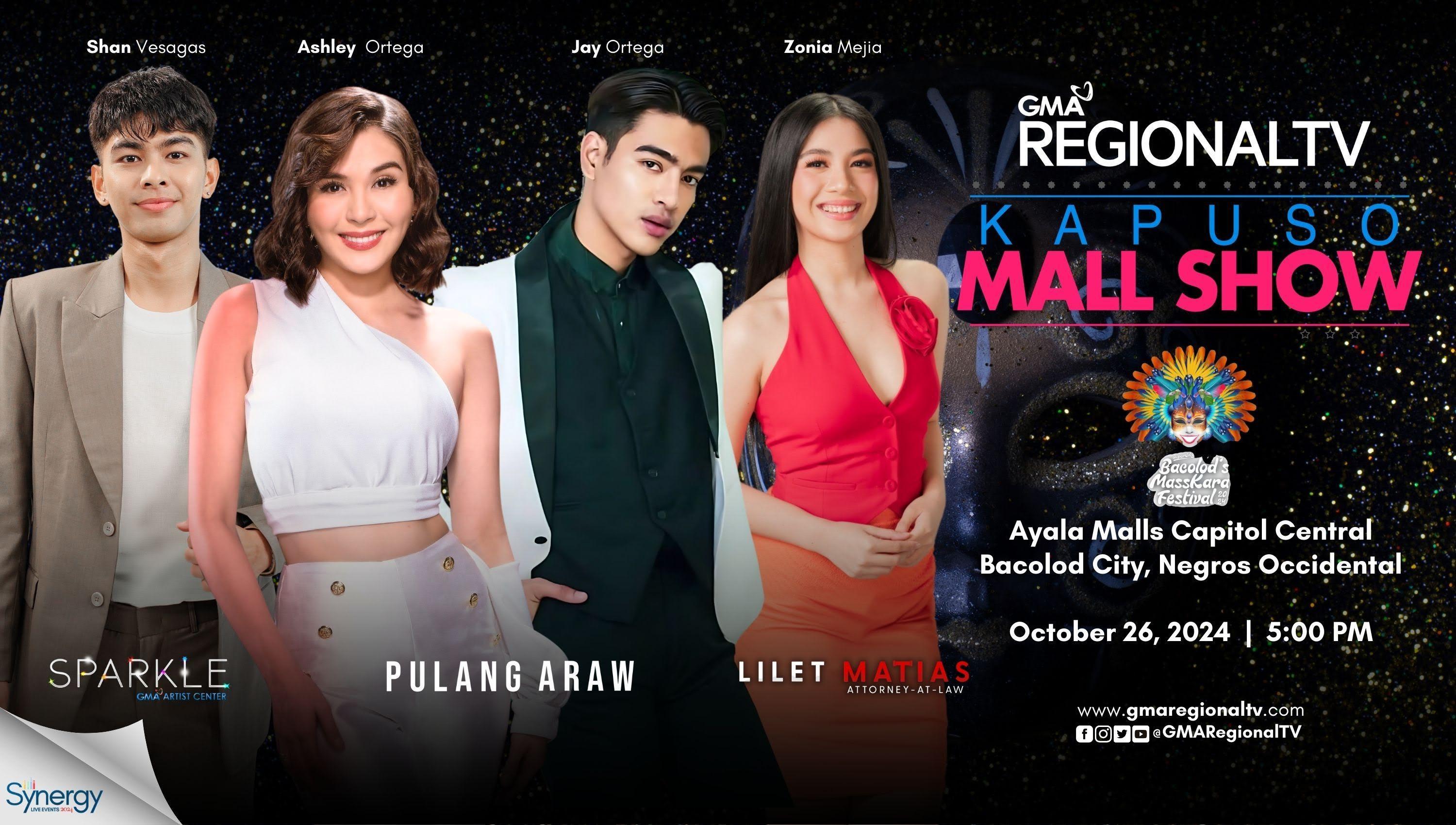 Kapusong Bacolodnons will be treated with an afternoon filled with positive and radiating energy as Pulang Araw's Ashley Ortega and Jay Ortega, Lilet Matias: Attorney-at-Law's Zonia Mejia, and Sparkle artist Shan Vesagas bring in some entertainment like no other in the Kapuso Mall Show this Saturday (October 26), 5 p.m. at the Activity Center, Ayala Malls Capitol Central.