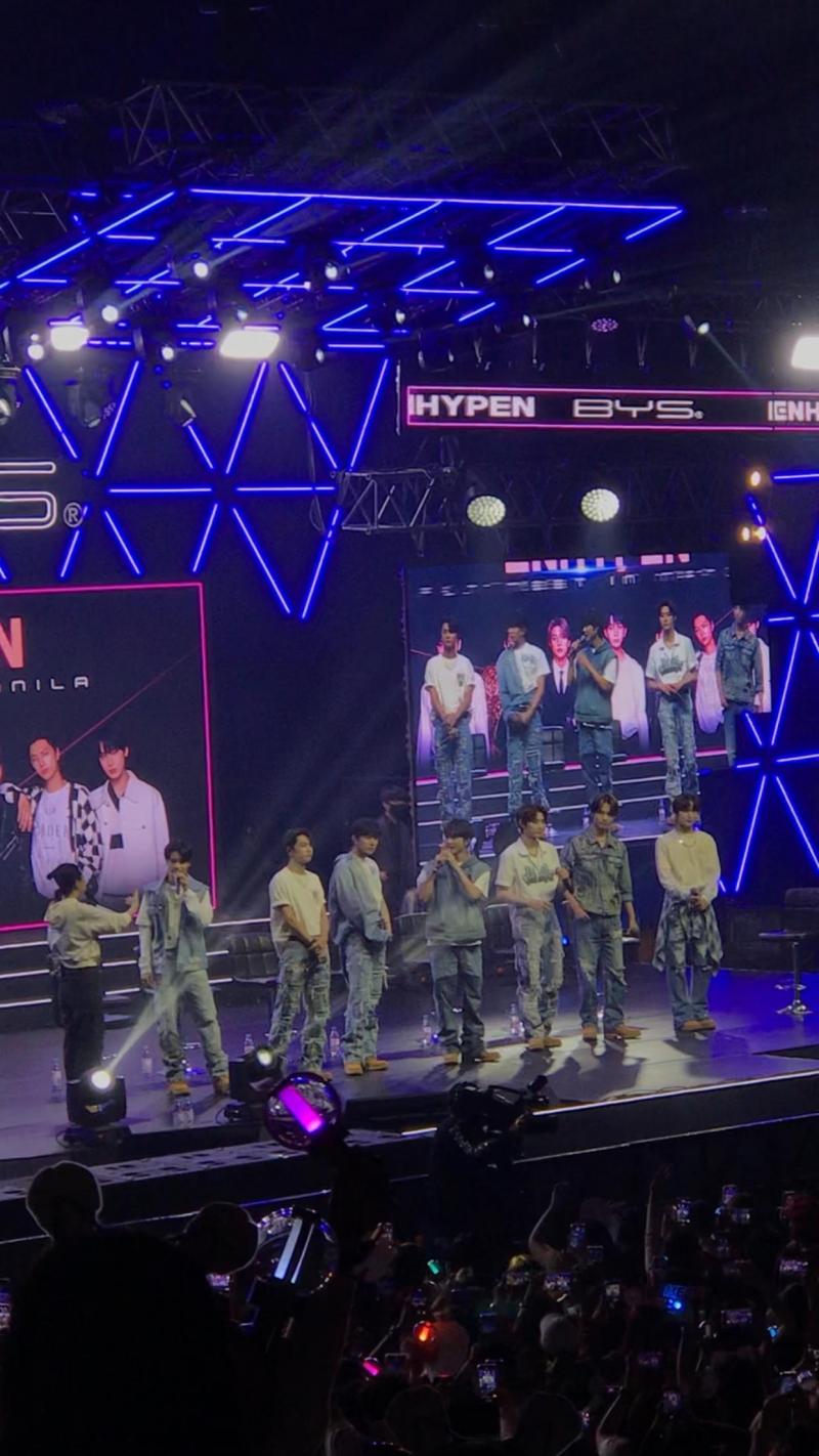 In celebration of local cosmetic brand BYS's 10th anniversary, they invited ENHYPEN to hold a fan meet event with their Filo ENGENEs who have been long awaiting their arrival in the country. The festivities started with performances from P-pop groups VXON and G22, as well as a song and dance number from Cassy Legaspi's rumored boyfriend Darren Espanto.
