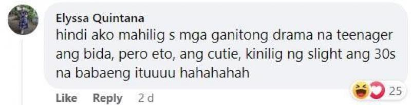 “Hindi ako mahilig sa mga ganitong drama na teenager ang bida, pero ito, ang cutie, kinilig ng slight ang 30s na babaeng ito hahahaha,” kuwelang komento ng isa pang netizen.