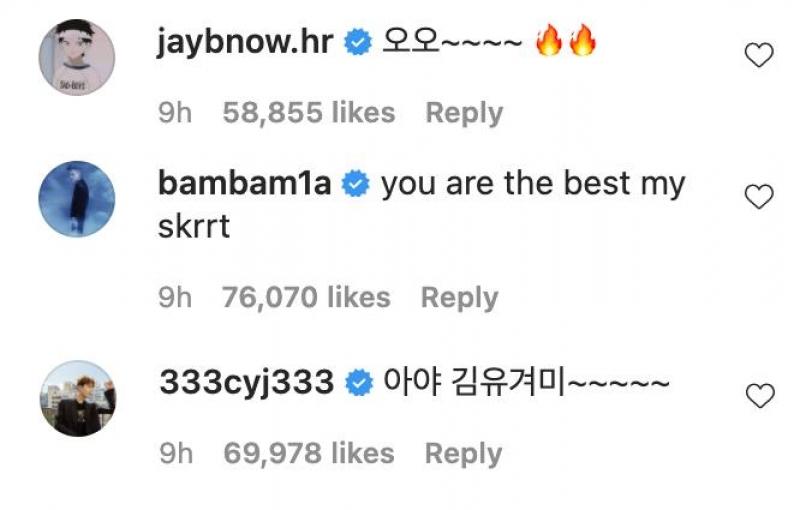 In Yugyeom's personal Instagram, GOT7 members Bambam, Youngjae, and JB congratulated Yugyeom on signing and releasing the dance visual.