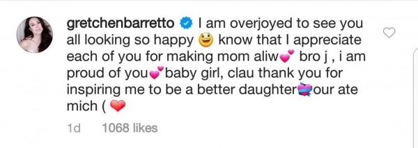 In the comments section, Gretchen seems happy to see their family looking happy and united despite the obstacles that have come their way.