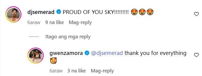 After seeing Gwen's post, David commented saying, “PROUD OF YOU SKY!!!!!!!!!”