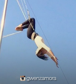 In a series of Instagram posts, Gwen showcased death-defying acrobatic moves while on the trapeze.