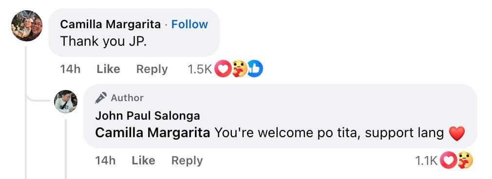 Puno naman ng pasasalamat ang ina ni Mika Salamanca na si Camilla Margarita, “Thank you JP.” INSERT LINK:
