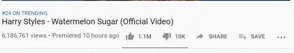 The English singer and songwriter's "Watermelon Sugar" is a smash hit on YouTube, after garnering over 6.1 million views in less than 10 hours since it was uploaded.