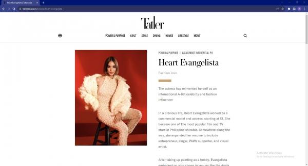 Global fashion icon Heart Evangelista is one of Asia's Most Influential people, according to Tatler Asia Magazine.