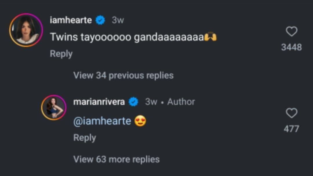 Heart commented, "Twins tayoooooo gandaaaaaaaa" to which Marian replied with a heart-eyed emoji.