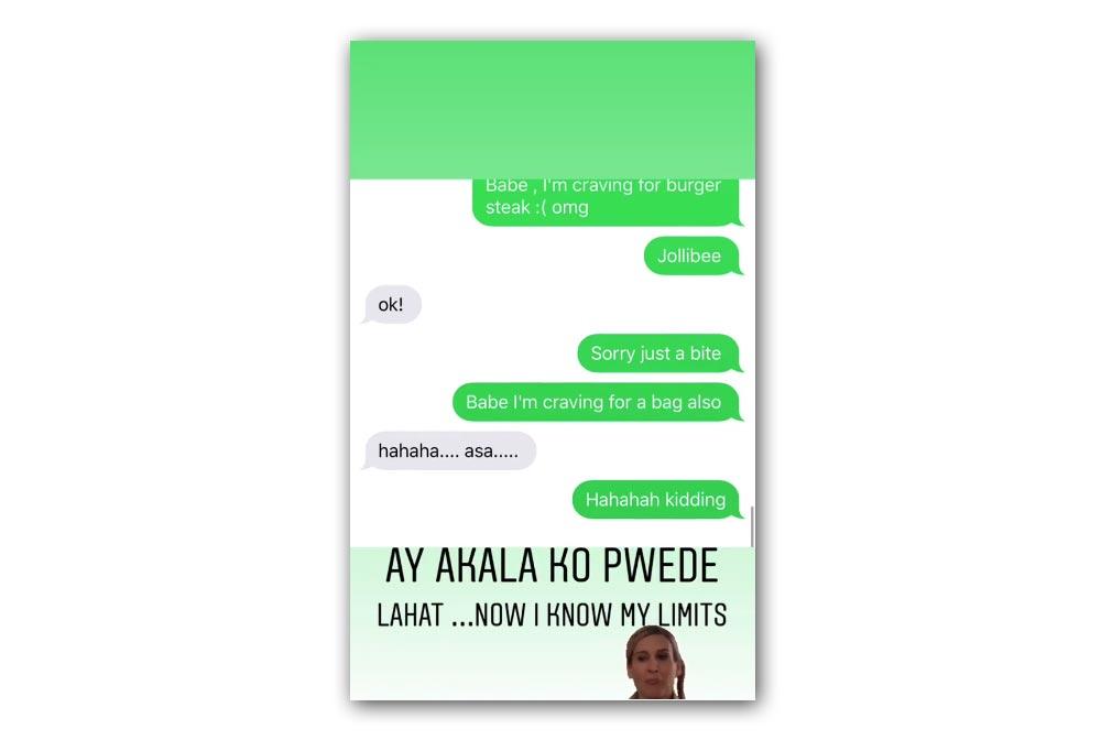 On her Instagram Stories, Chiz responded shortly to her request to buy her a fast food burger steak.
