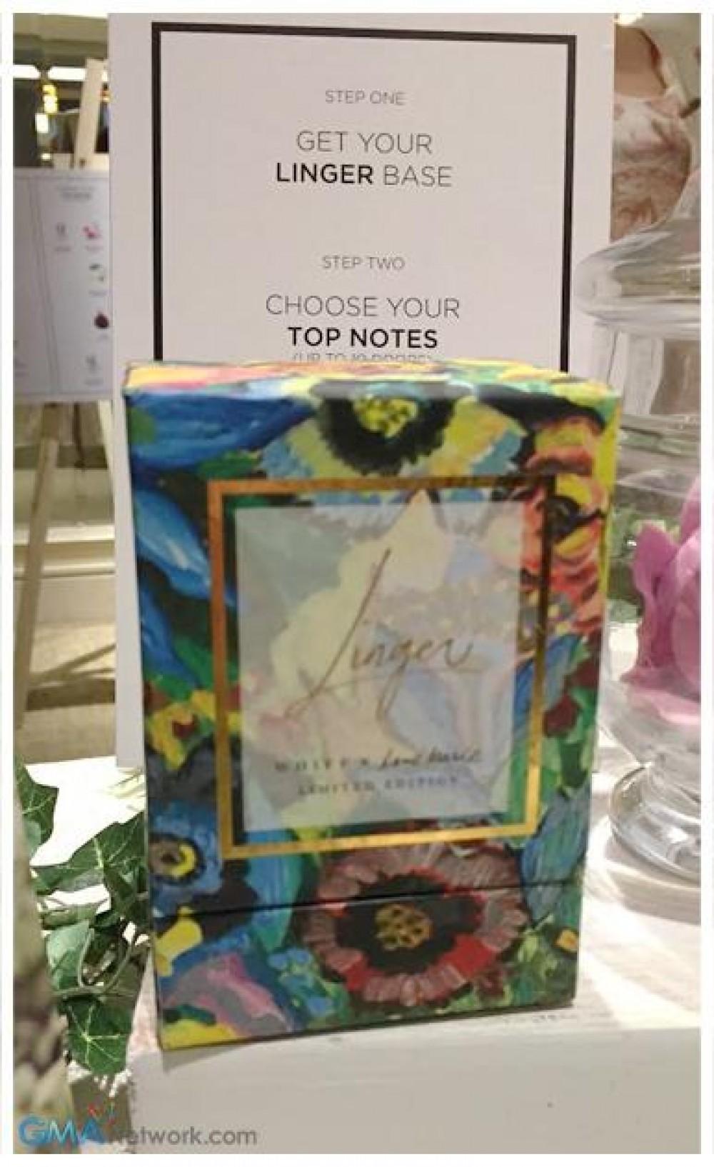 After working on this project for a year, Heart Evangelista launched her signature scent named "Linger" at a press conference at Aruga by Rockwell on October 12. Heart collaborated with the first Filipino perfumer RJ Lopena and fragrance company Whiff for her fragrance.