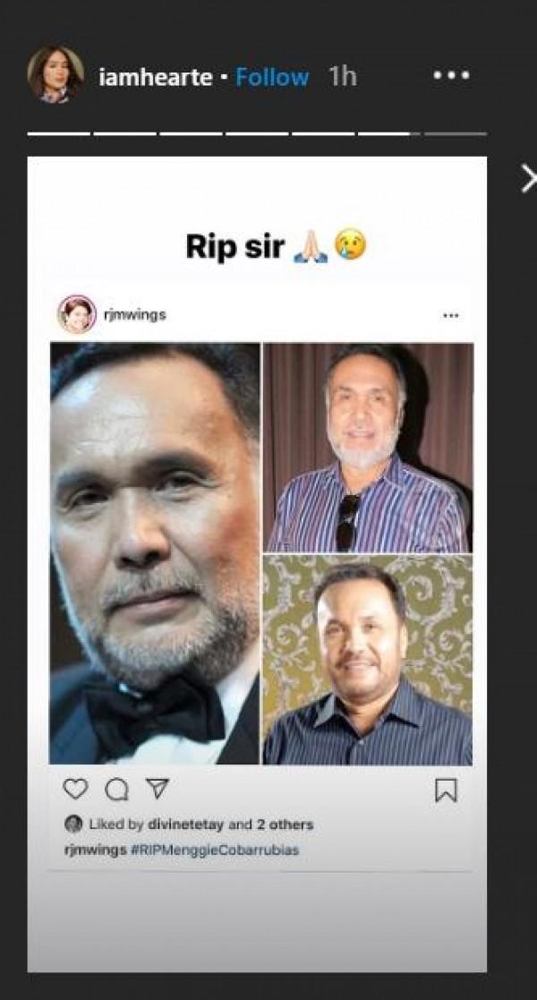Queen of Creative Collaborations Heart Evangelista took to Instagram to express her grief over the death of a highly-respected actor.