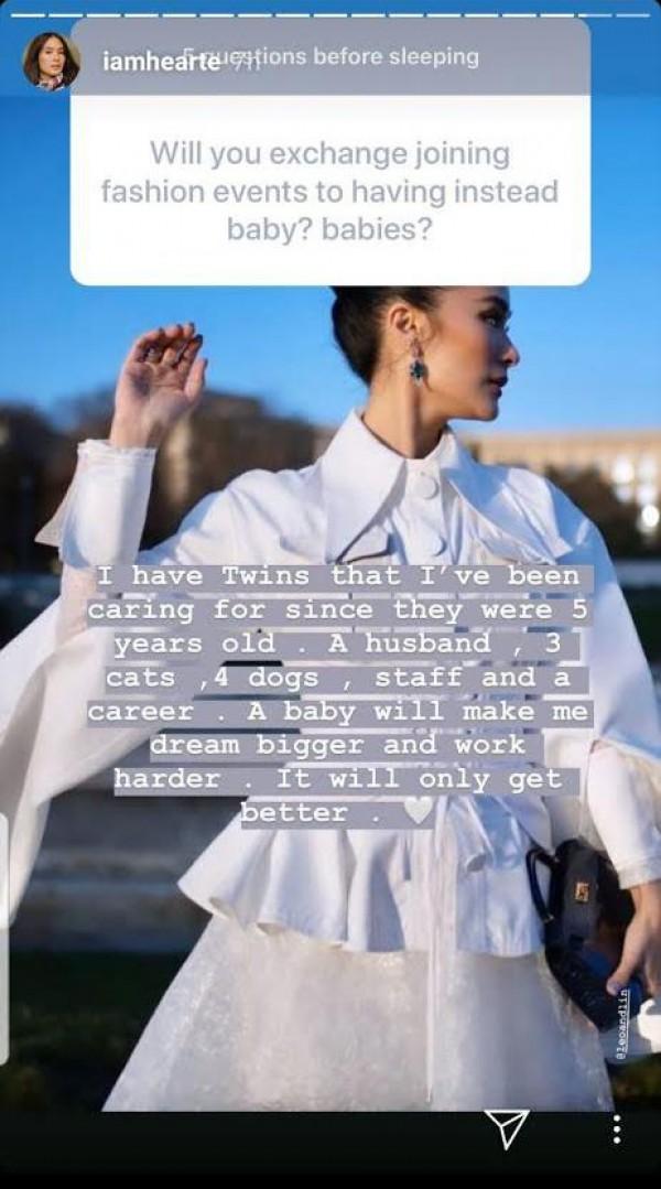 In her post via Instagram Story, the Kapuso actress-TV host was asked if she is willing to trade attending those glitzy fashion events to an opportunity to have her own baby.
