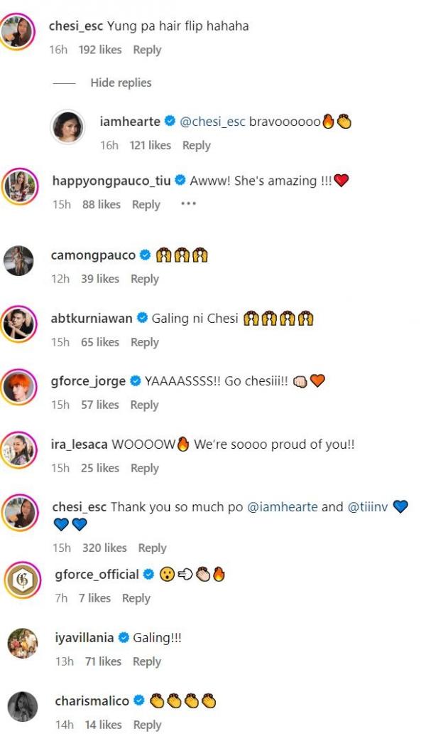 Chesi replied to the sweet message of her Tita Heart and thanked her. She then quipped, “ Yung pa hair flip hahaha.”