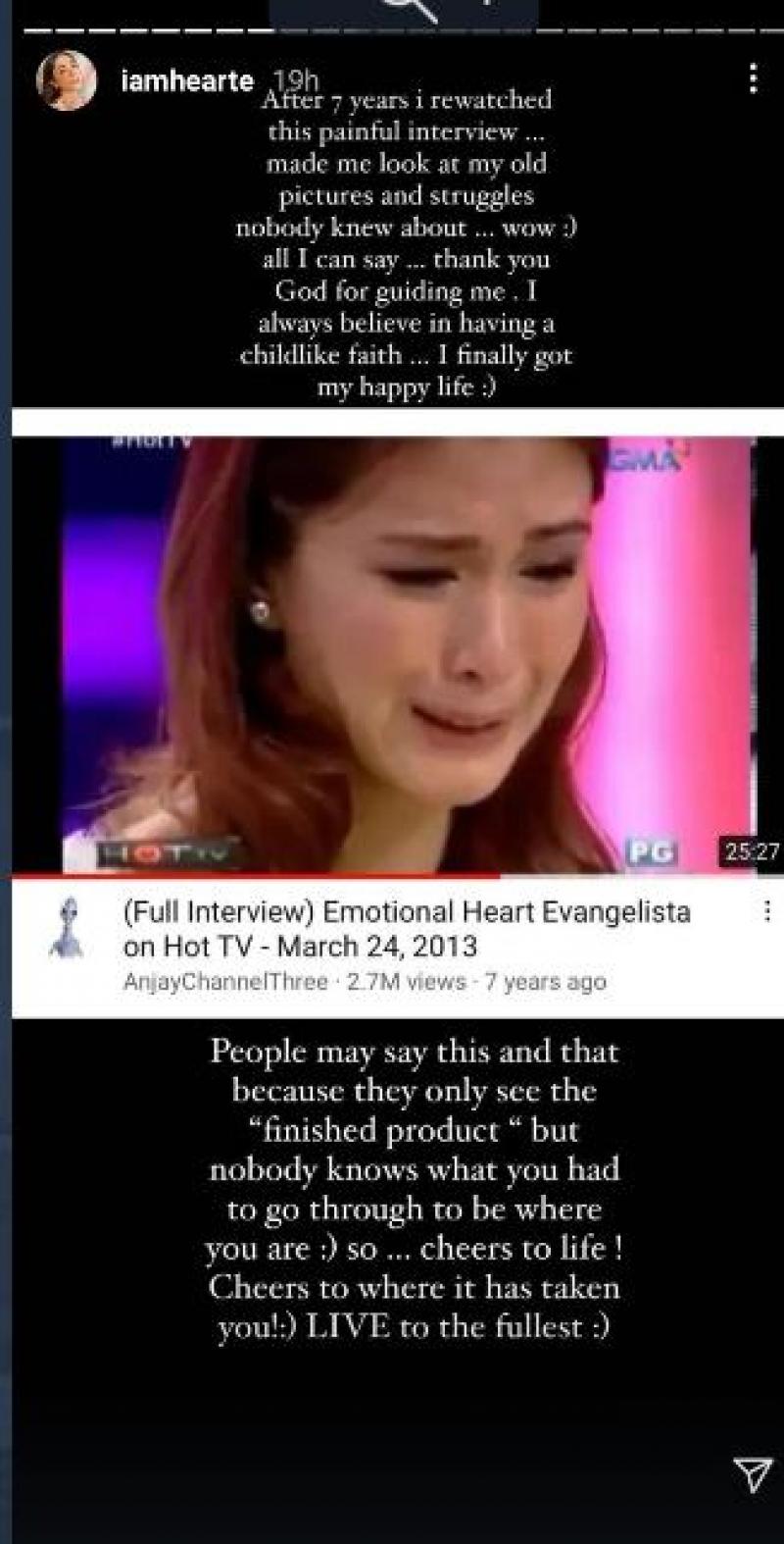 In a separate post on Instagram Story, Heart expressed that she's thankful for all the heartaches she experienced that made her strong enough to fight for her husband.