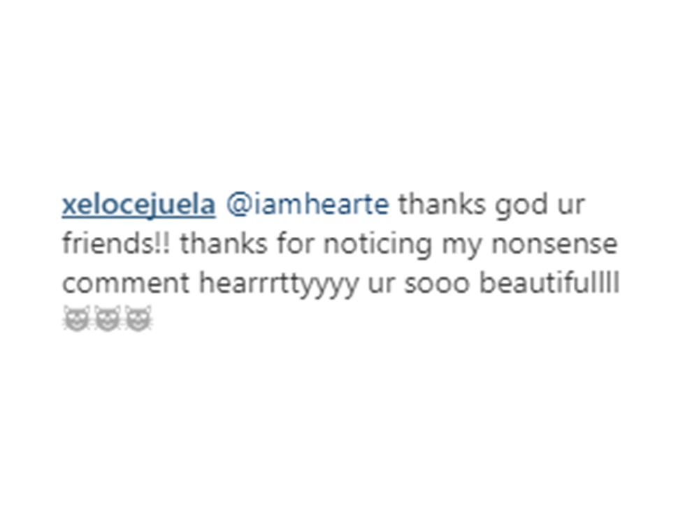 @xelocejuela told Heart that she's happy to know that they're friends.