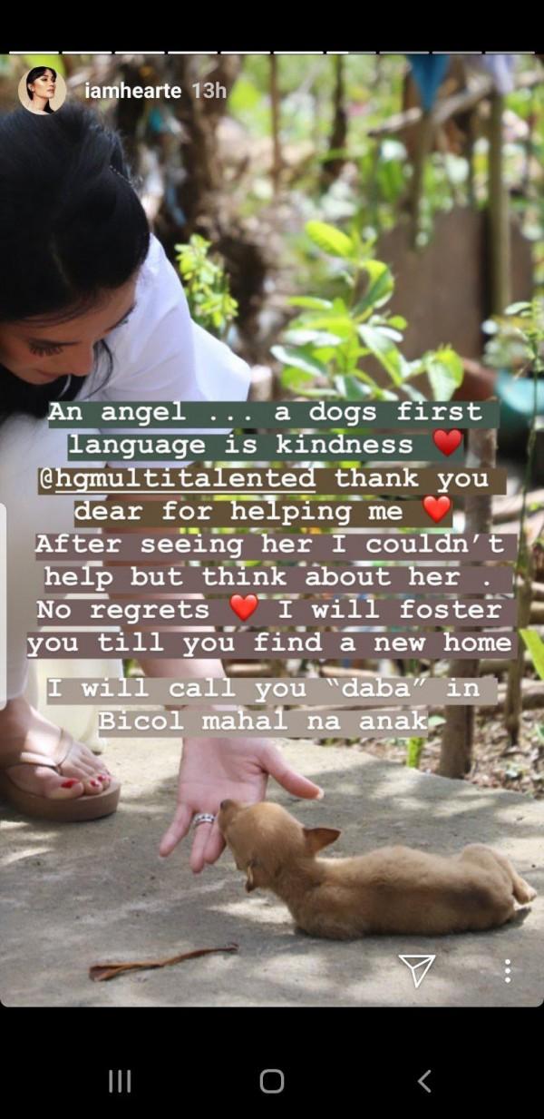 In a series of posts in Instagram Story, Heart told her followers that she became a foster parent to a cute dog, whom she named “Daba.”